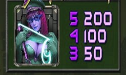 - สัญลักษณ์ Vanessa ใส่ชุดสีนํ้าเงิน และสัญลักษณ์ ปืน สัญลักษณ์เชื่อมต่อกันจากซ้ายไปขวา 3 สัญลักษณ์ อัตราการจ่ายอยู่ที่ 30 บาท