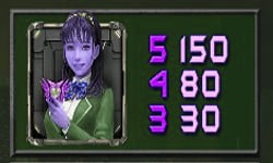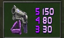 - สัญลักษณ์ Vanessa ใส่ชุดสีนํ้าเงิน และสัญลักษณ์ ปืน สัญลักษณ์เชื่อมต่อกันจากซ้ายไปขวา 5 สัญลักษณ์ อัตราการจ่ายอยู่ที่ 150 บาท