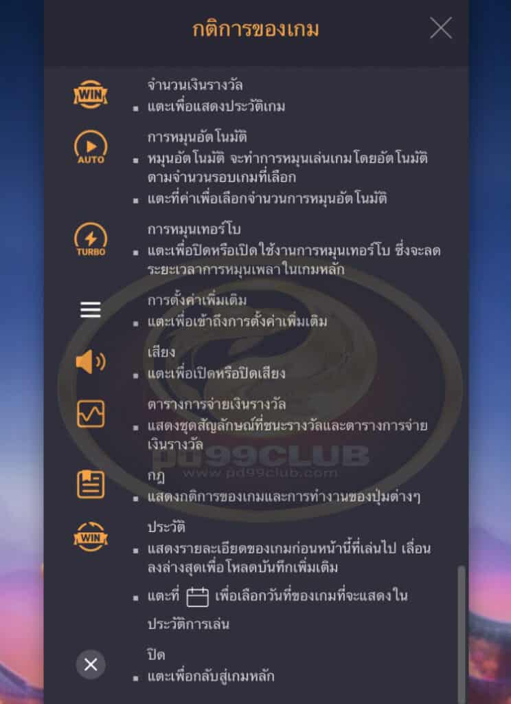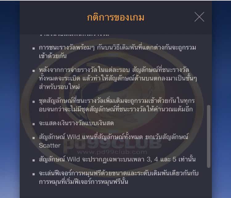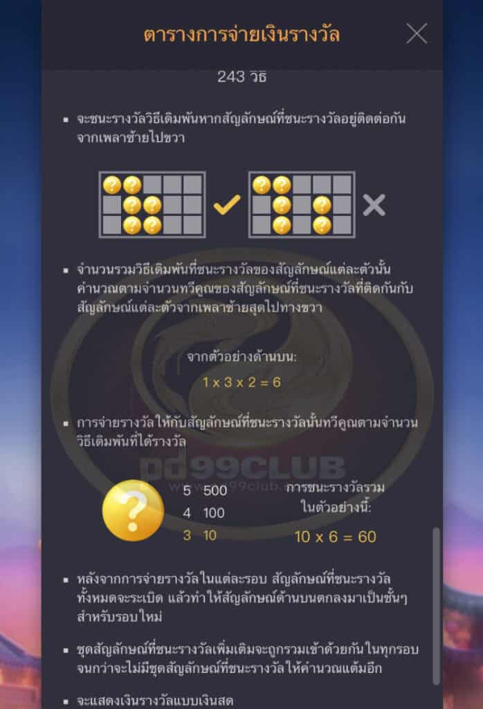 - ชุดสัญลักษณ์ที่ชนะรางวัลเเละการจ่ายเงินรางวัลจะเป็นไปตาม “ตารางการจ่ายเงิน”