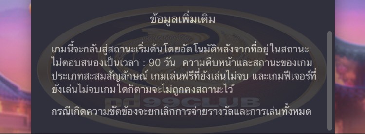 - เกมนี้จะกลับเข้าสู่สถานะเริ่มต้นโดยอัตโนมัติหลังจากที่อยู่ในสถานะไม่ตอบสนองเป็นเวลา 90 วัน