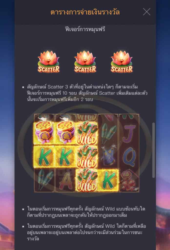 - สัญลักษณ์ Scatter จะไม่ปรากฏระหว่างฟีเจอร์การหมุนฟรี