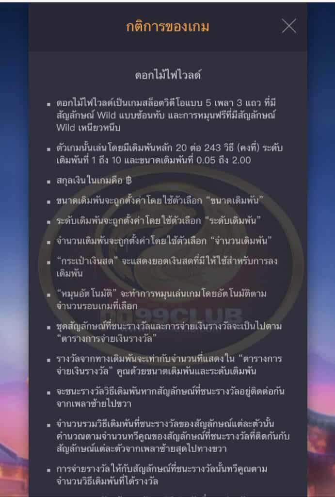 กฏกติกาเกม Wild Fireworks