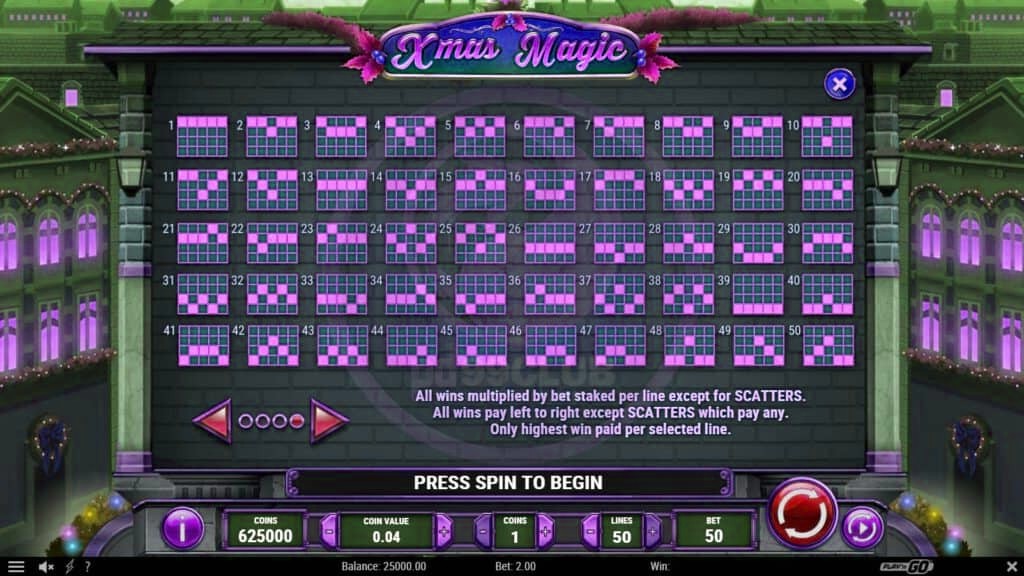 - ไลน์เดิมพันที่ชนะรางวัลมีทั้งหมด 50 ไลน์เดิมพัน